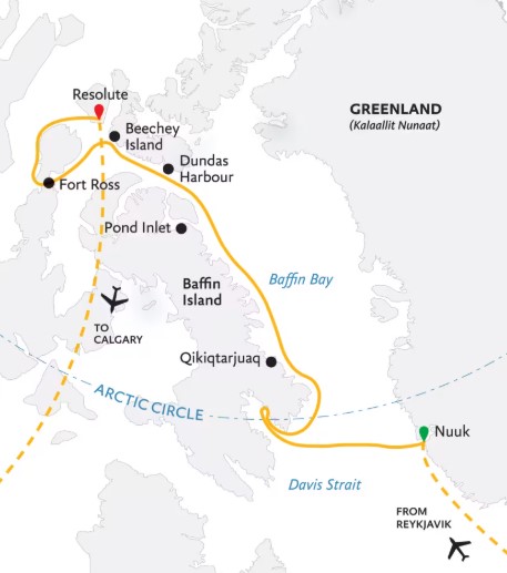 Transfer Package includes a hotel night in Reykjavik on Day 1, group airport transfer on Day 2, charter flight Reykjavik – Nuuk on Day 2, Nuuk airport transfer, Resolute airport transfer, charter flight Resolute – Calgary on Day 16, Calgary airport transfer on Day 16 and a hotel night in Calgary on Day 16.